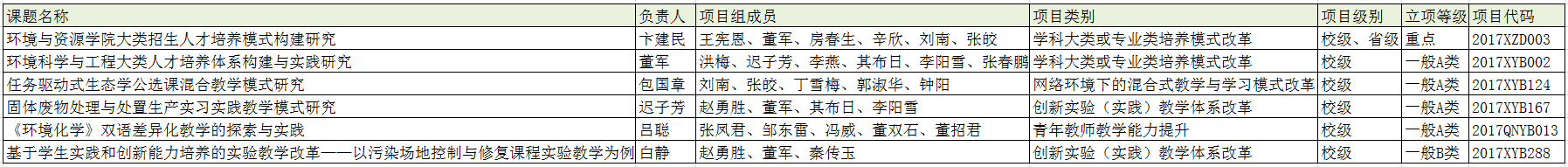 2017年教学改革项目