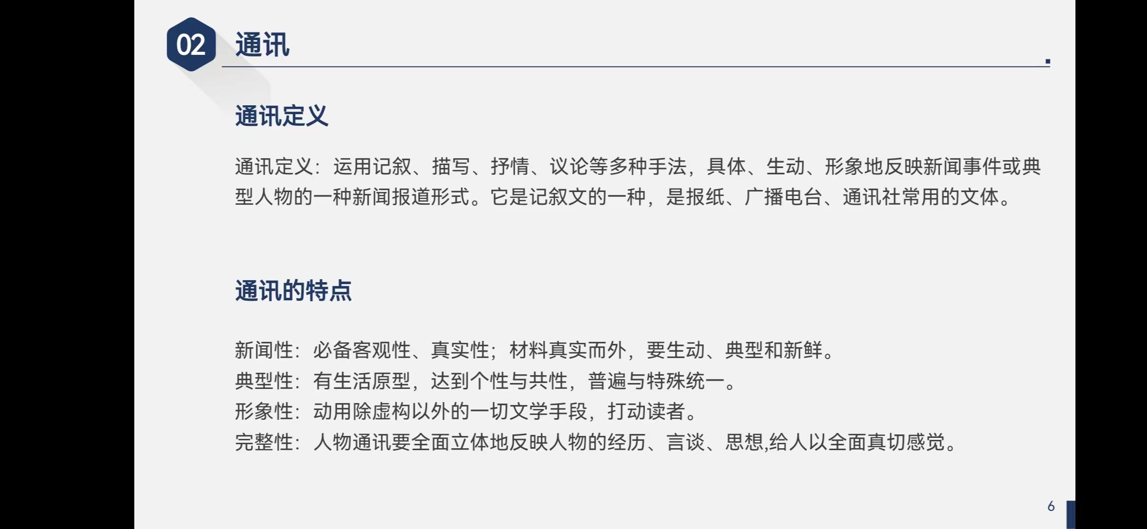 会上,陈实同学由表及里、层层递进,从通讯的定义开始,到标题的对仗、内容的详实、结尾的升华,为同学们详细介绍了一篇完美的通讯稿是如何形成的。陈实同学也结合了她的工作经历,分门别类的向我们讲述了不同类型与主题的活动适配怎样的文风,以及有哪些不同的注意要点。