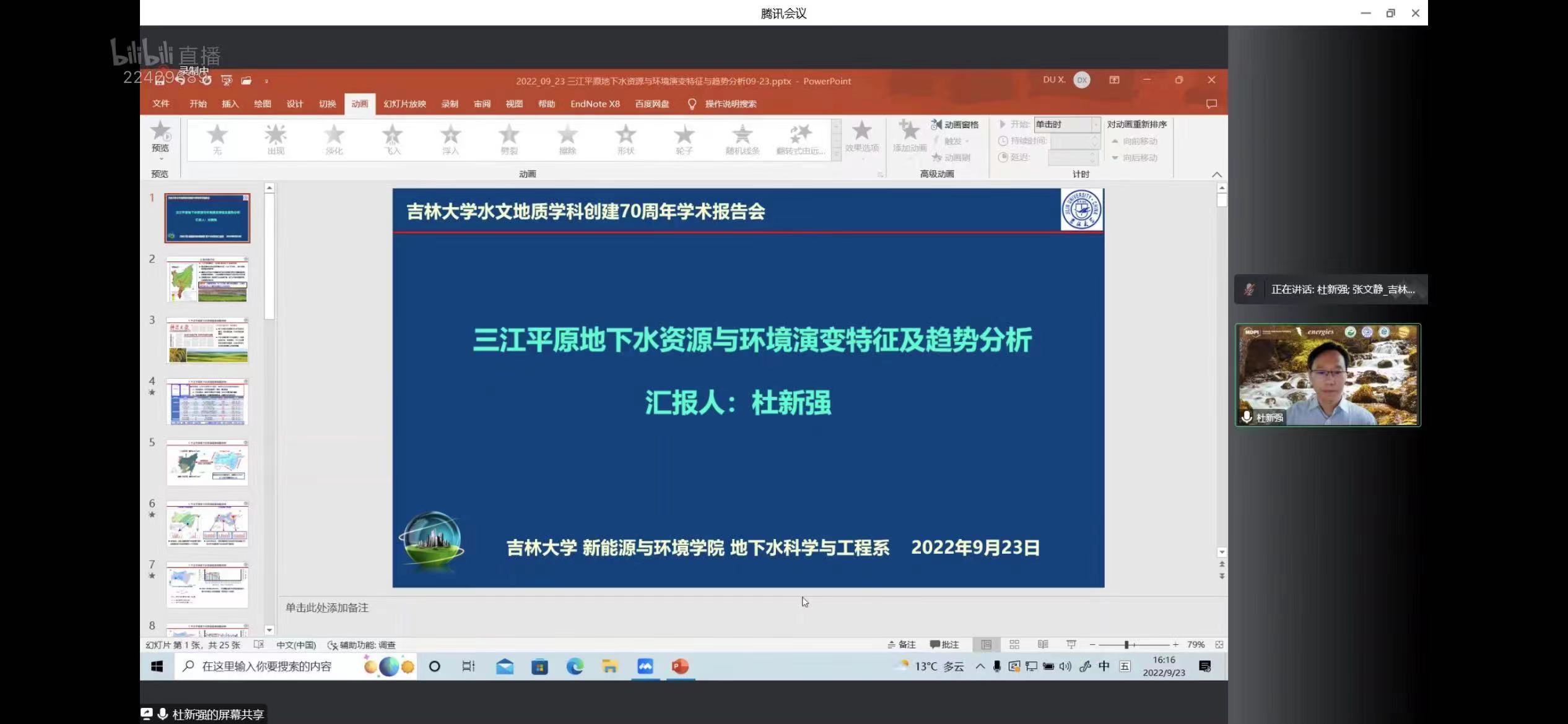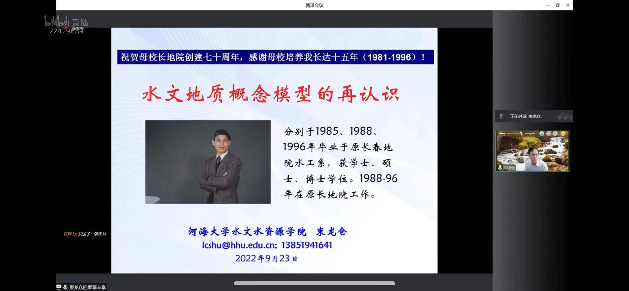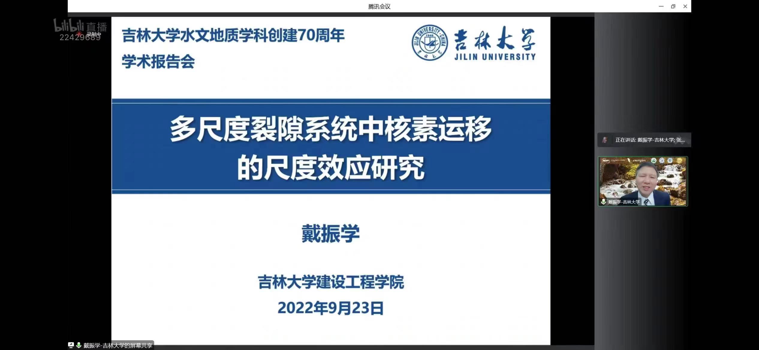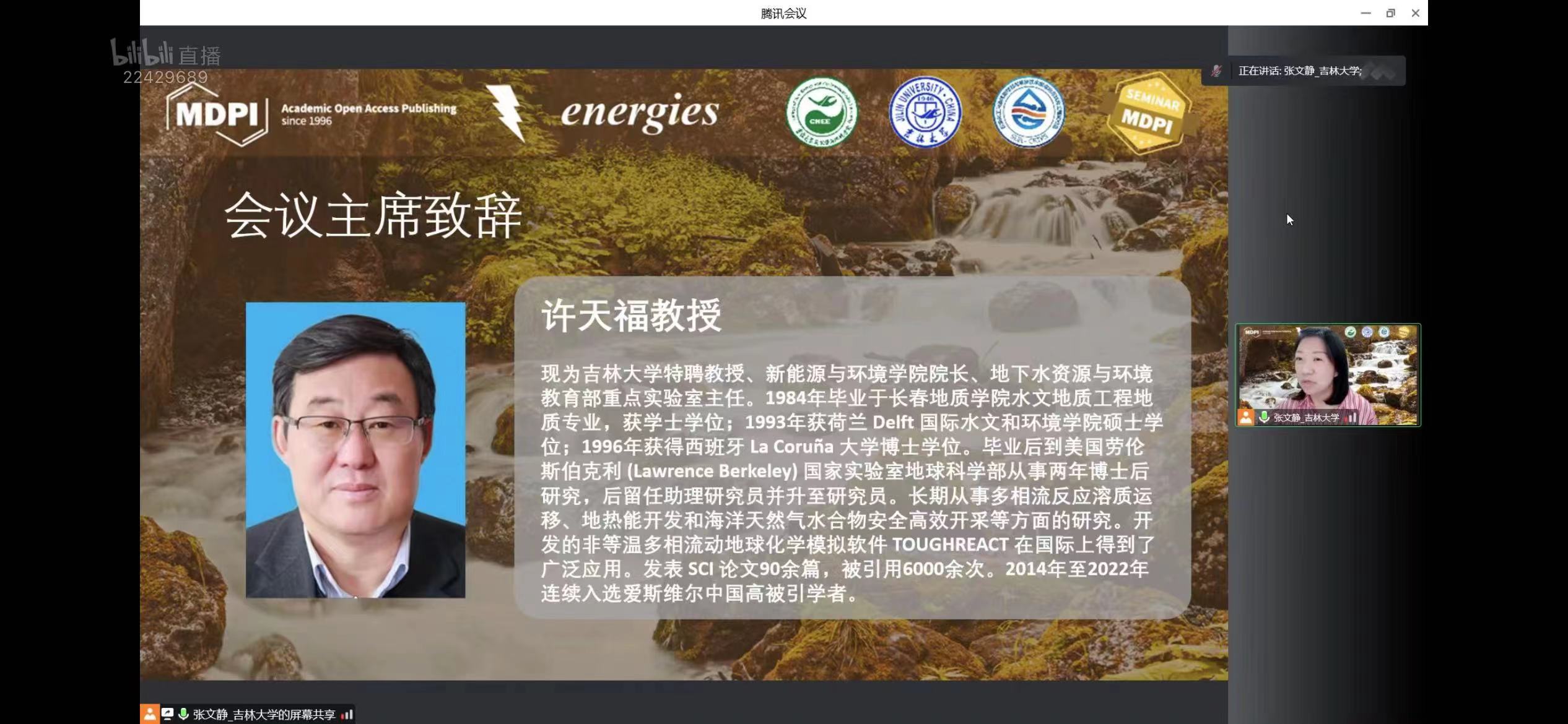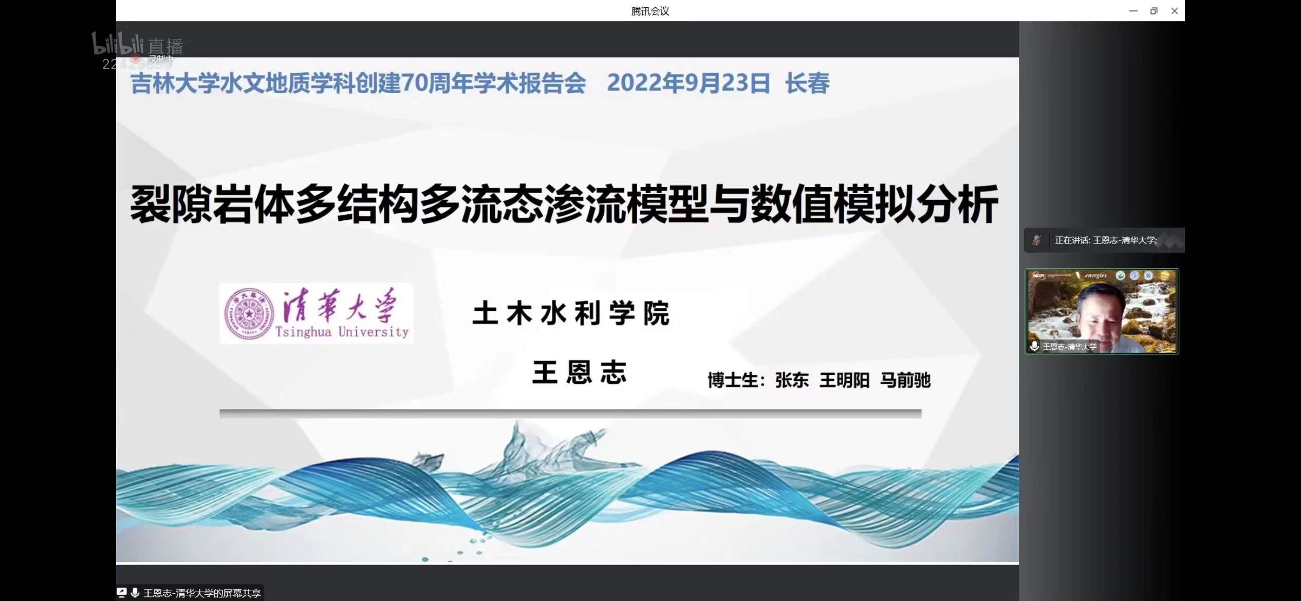 2022年9月23日下午,bat365官网登录入口携手Energies 期刊通过MDPI线上直播平台举办了首场庆祝吉林大学水文地质学科(原长春地质学院水工系)创建70周年学术报告会。本次报告会由许天福院长担任会议主席,特别邀请:首都师范大学宫辉力教授、清华大学王恩志教授、吉林大学戴振学教授、河海大学束龙仓教授以及吉林大学杜新强教授,围绕水文地质学的相关研究进展为广大师生带来精彩纷呈的学术讲座。本次报告会由院长助理张文静教授主持,共吸引了MDPI多个直播平台相关领域专业观众累计超2万多人次的在线参与和观看。