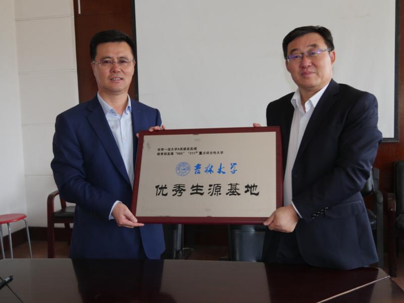 5月25日上午,吉林大学与东港二中“优秀生源基地”授牌仪式在东港二中举行。我校环境资源学院院长许天福教授、环境与资源学院党委副书记兼副院长汪祥松老师、招生办信息科科长韩冰雪老师以及经济学院王皓博士与东港二中李宪杰校长、安忠成副校长和苗盛主任出席了仪式。