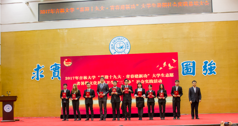 (记者:付泽鑫 霍美汐)2017年12月5日上午,吉林大学“喜迎十九大,青春建新功”2017年吉林大学暑期社会实践总结大会于中心校区东荣会议中心一楼报告厅举办,校党委书记杨振斌老师受邀出席。我院由温卓老师带队参加了本次总结大会分享经验并接受表彰。
