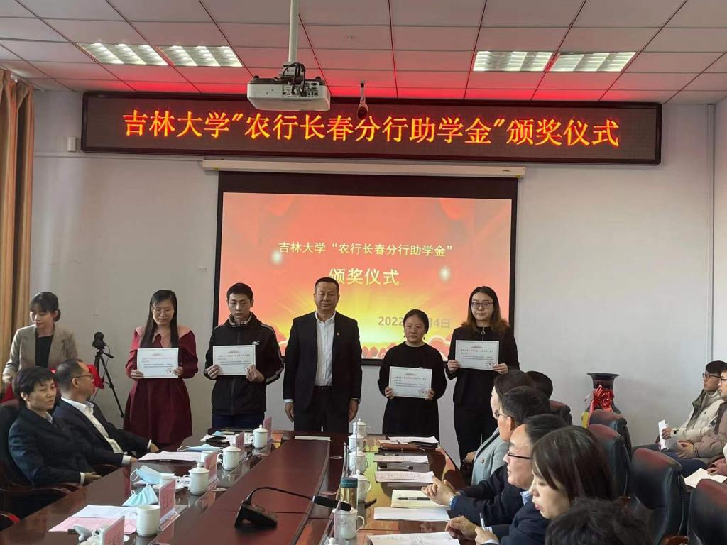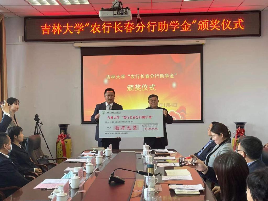 中国农业银行股份有限公司长春分行向我院捐赠助学金10万元,设立吉林大学“农行长春分行助学金”,用于奖励学院家庭贫困且品学兼优的大学生。2022年1月4日上午11:00,吉林大学“农行长春分行助学金”颁奖仪式在吉林大学前卫北区理化楼260会议室举行。农行吉林省分行党委委员、副行长兼长春分行党委书记、行长王金山,农行长春分行党委委员、副行长李韩鹏,农行长春分行党委委员、副行长韩宪军,农行长春分行机构业务部总经理鲍秋颖,农行长春分行网金科技部总经理李云鑫,农行长春分行办公室主任王春卿,农行长春高新支行行长张鹏,bat365官网登录入口院长许天福、党委书记汪祥松等学院班子成员及获奖学生参加了颁奖仪式。