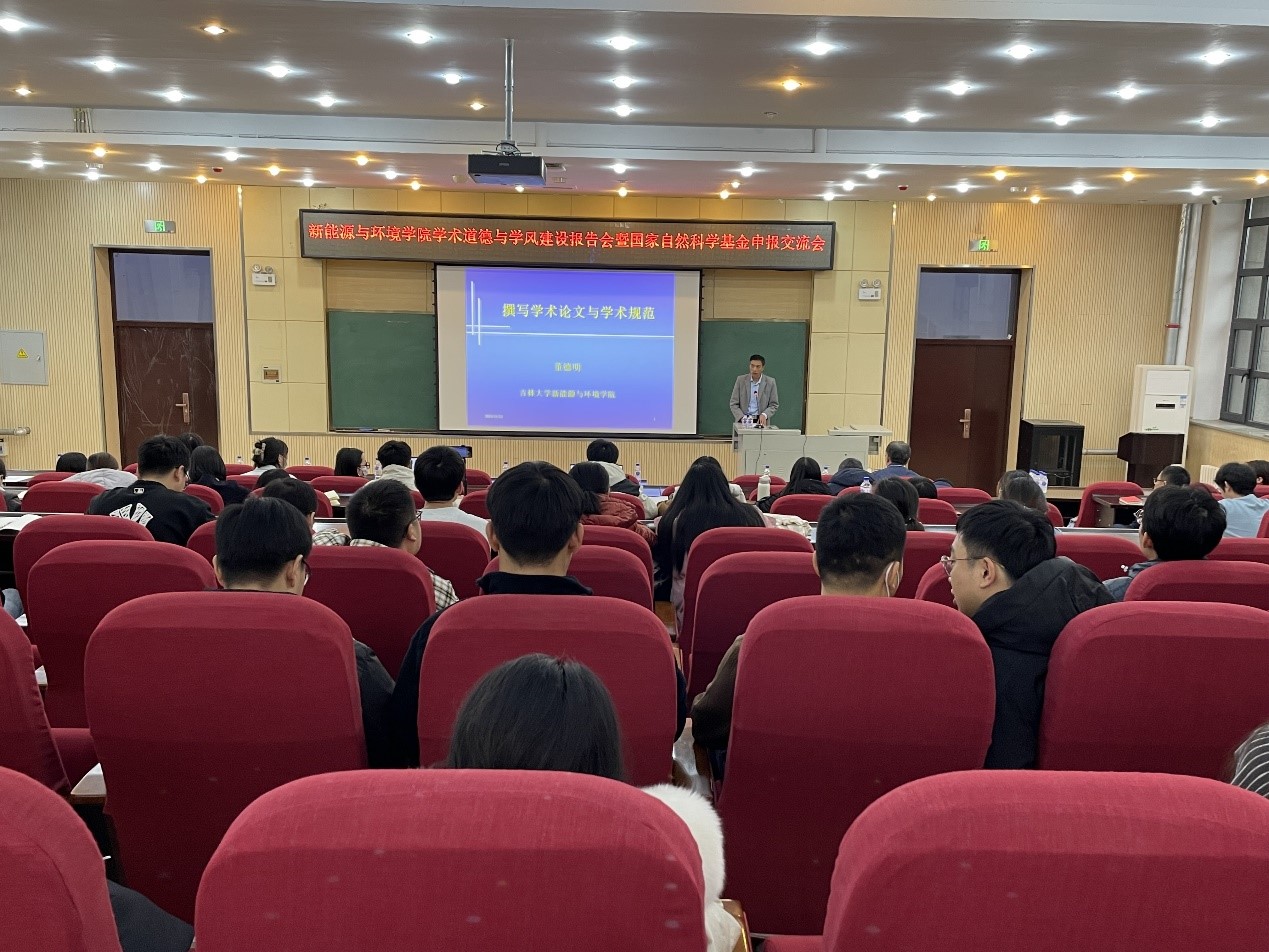 董德明教授作了题为《学术论文撰写与学术规范》的专题报告,一方面论述了撰写学术论文的全过程、意义及需注意的问题;另一方面着重强调了学术规范的相关问题,明确学术道德、学术规范、学术不端的概念,督促师生们在从事科学研究的过程中,应严格遵守国家有关法律、法规、社会公德及学术道德规范,要坚持科学真理、尊重科学规律、崇尚严谨求实的学风,勇于探索创新,恪守职业道德,维护科学诚信。科研院科技管理办公室副主任董双石教授作了题为《国家自然科学基金项目申请体会与经验交流》的报告,将学术诚信的思想贯彻始终,董双石教授从在基金委和学校科技管理办公室工作的经验出发从自然基金申报指导思想、撰写申请书的经验分享、到如何进行申请系统填报、申请中的注意事项、学校辅导奖励政策介绍等,系统而又全面的对基金申请中遇到的各类问题都进行了梳理和解释。苏小四教授结合自己获得国家自然基金重点项目、联合基金项目等经验,从基金资助格局、评审流程、申请书的撰写以及善后四方面分享了《国家自然科学基金项目申请个人心得体会交流》的报告。分享了基金申请从布局开始,到选题到写作应当注意的细节并给出了自己的建议。