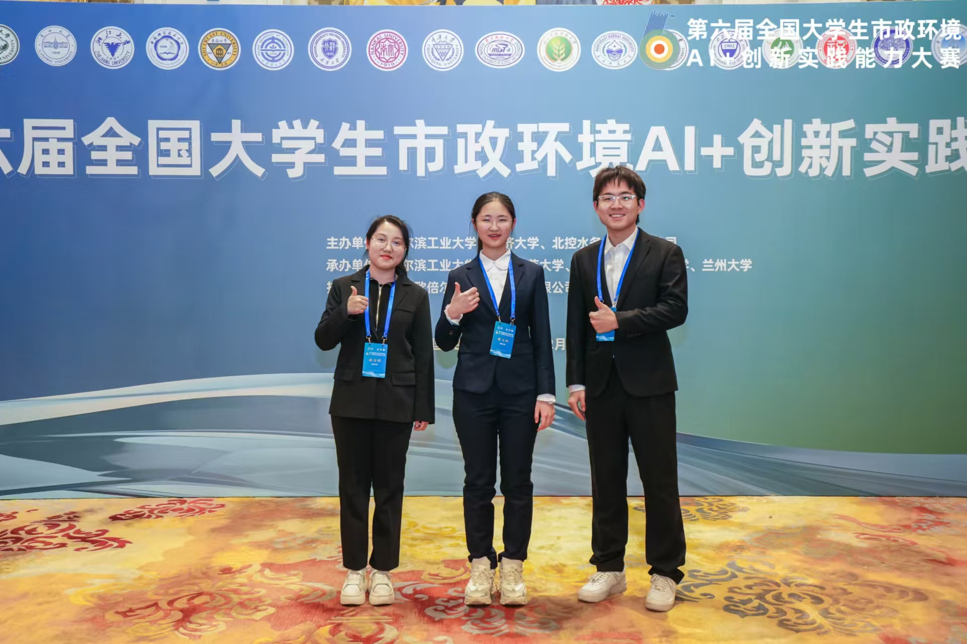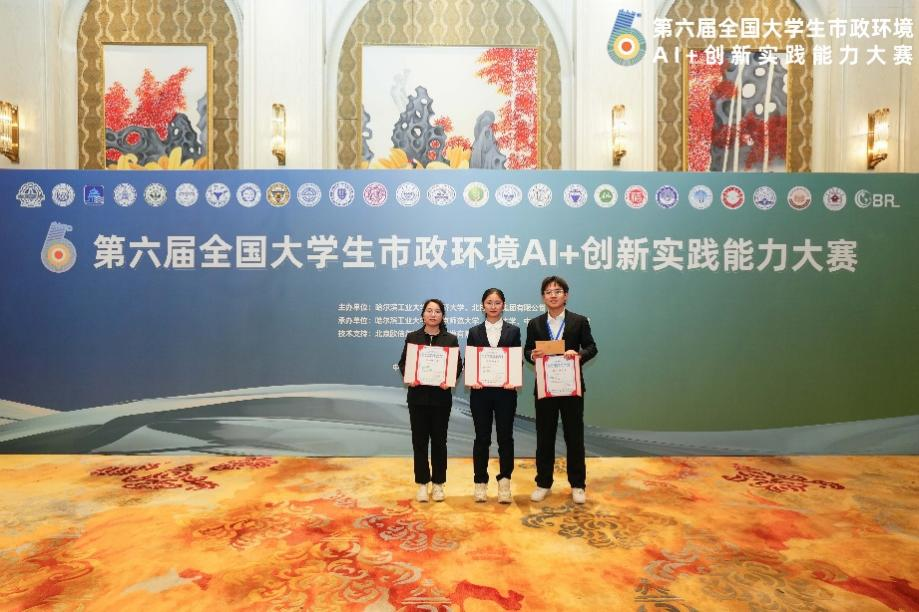 2024年12月27日-29日,由哈尔滨工业大学、同济大学、北控水务集团有限公司共同主办的第六届全国大学生市政环境AI+创新实践能力大赛决赛在哈尔滨顺利举办。我院的Golden Triangle队伍闯进决赛并获得团体一等奖。