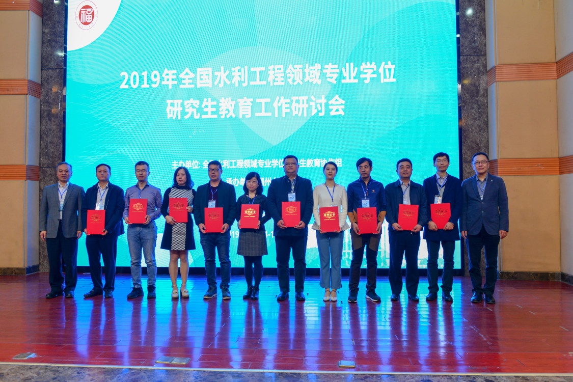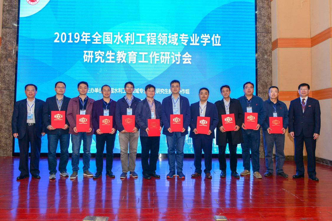 为更好地总结、交流水利工程专业学位研究生教育培养的工作和指导经验,促进水利工程专业学位研究生教育发展,提高导师指导能力,不断提高培养质量,经个人申请、单位推荐、水利工程领域核心组成员和专家投票、教指委审定,2019年共有18名指导教师被评为全国水利工程专业学位研究生优秀指导教师,14 名教工被评为全国水利工程专业学位研究生教育工作先进个人,其中我院王福刚教授获得 2019年“全国水利工程专业学位研究生优秀指导教师”荣誉称号,研究生办公室主任李军获得2019年 “全国水利工程专业学位研究生教育工作先进个人”荣誉称号。
