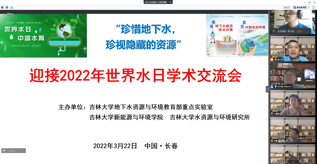 为深入落实习近平总书记“节水优先、空间均衡、系统治理、两手发力”治水思路,共同探讨地下水保护与利用的平衡之道,3月22日下午bat365官网登录入口、水资源与环境研究所与地下水资源与环境教育部重点实验室共同组织召开了迎接2022年世界水日学术交流会。会议由水资源与环境研究所所长苏小四教授主持,学院领导、相关教师和研究生、本科生同学350余人在线参加了此次学术交流。