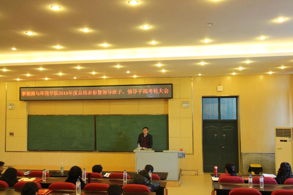 院长许天福教授代表学院向收到大会表彰的先进个人和团队表示衷心的祝贺,并做了学院2018年度工作总结汇报。许院长在汇报中从学科专业建设(重点是新能源学科建设)、本科教学、研究生培养、科学研究、人才培养、师资队伍建设、国际交流与合作、本科学生工作及学院行政管理工作等多个方面总结了bat365官网登录入口在过去一年的工作。同时,也客观地、实事求是地指出了存在的问题和不足。许院长对学院2019年的工作计划安排逐方面进行了详细的阐述,并对上半年几项重要工作做了详细的部署。